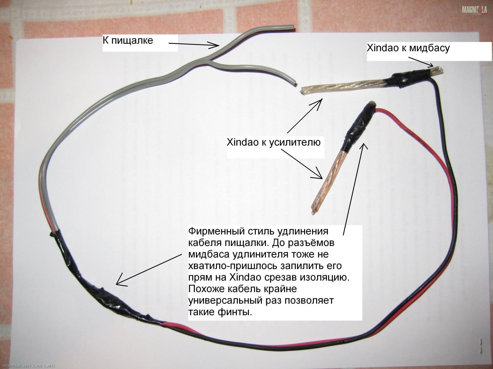 Интересно то, чем она была подключена - крайне облегченным кабелем фирмы XINDAO (интересно кто производитель:) ), а главное как (успокою всех во время монтажа ни один грамм припоя или канифоли не пострадал) :