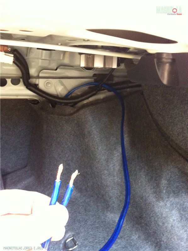 Ну вроде как видно, что акустический провод синего цвета идет к кроссоверу фронтальной акустики.