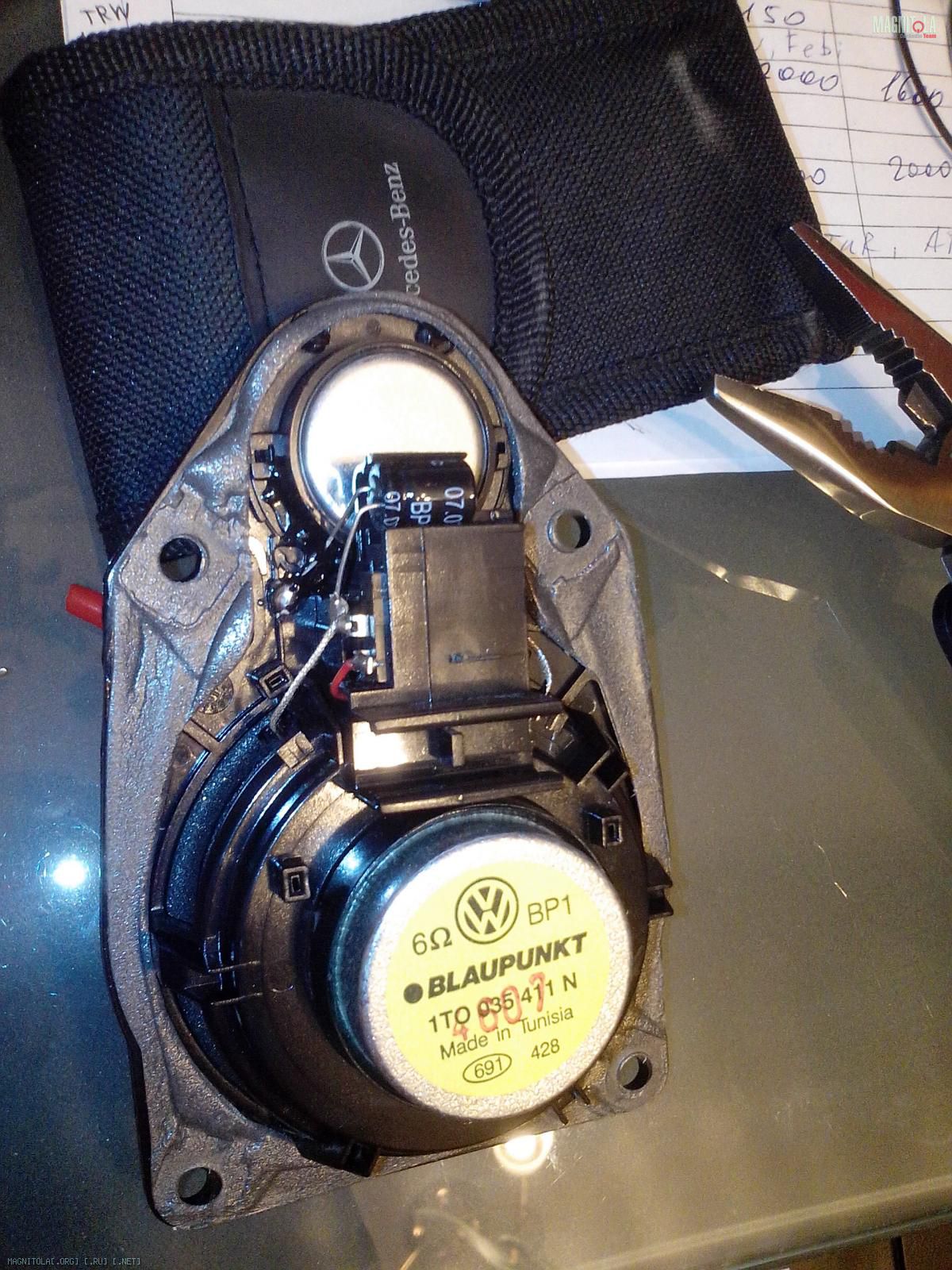 миды в дверях (18см) и СЧ (7см) и ВЧ (2см) собраны в единый блок на торпедо 6 Ом сопротивление указано, на вч последовательно припаян конденсатор B42823 который, насколько я понял из даташита пропускает частоты от 2000Hz.