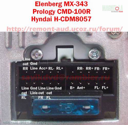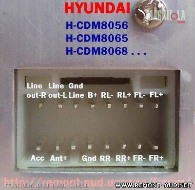 придётся автору немного попотеть и вызвонить нужное питание, по аналогии приведённых вариантов.B.UP и GND находятся быстро,АСС можно тоже вычислить.АС выходы прозвонкой тоже определяются-есть задача,чтобы потрудится немного.СМ врать не будет,а номер модели присвоен очередным китайским творением. HYUNDAI H-CDM8043 в HCDM8043.,
