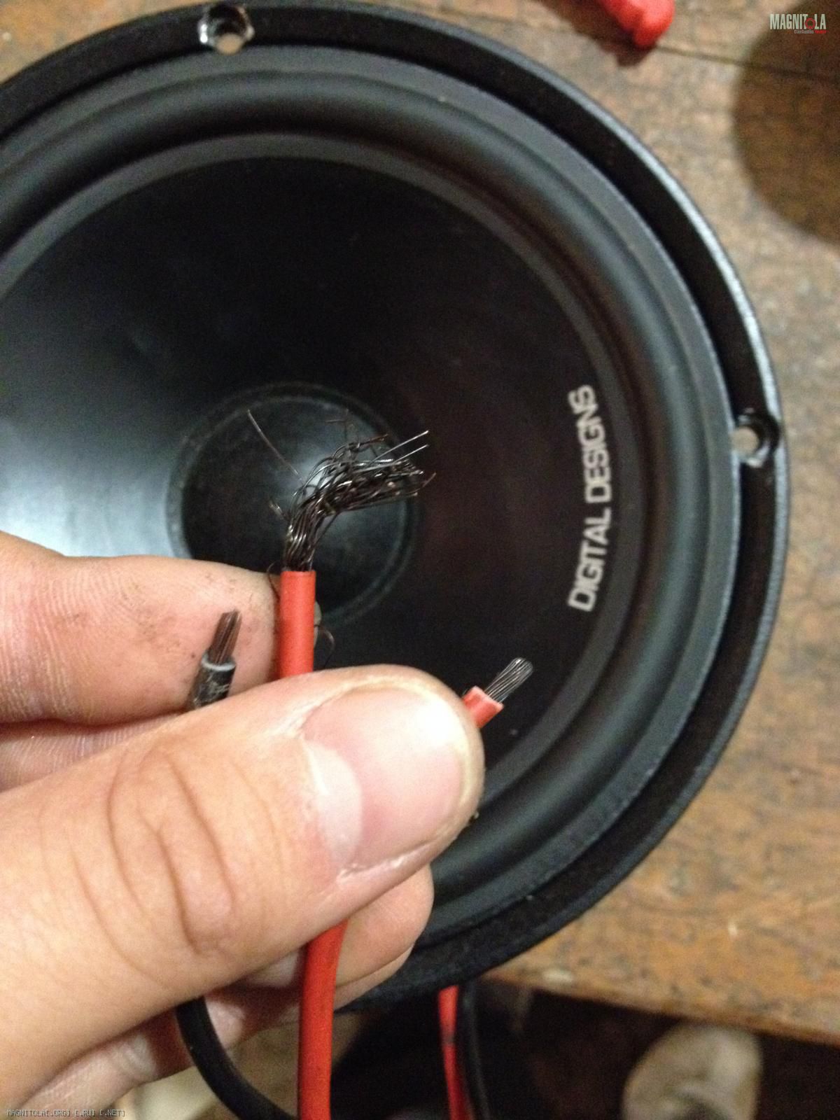 Если почернели подводящие на самом динамике, то это хуже, но не всегда смертельно...