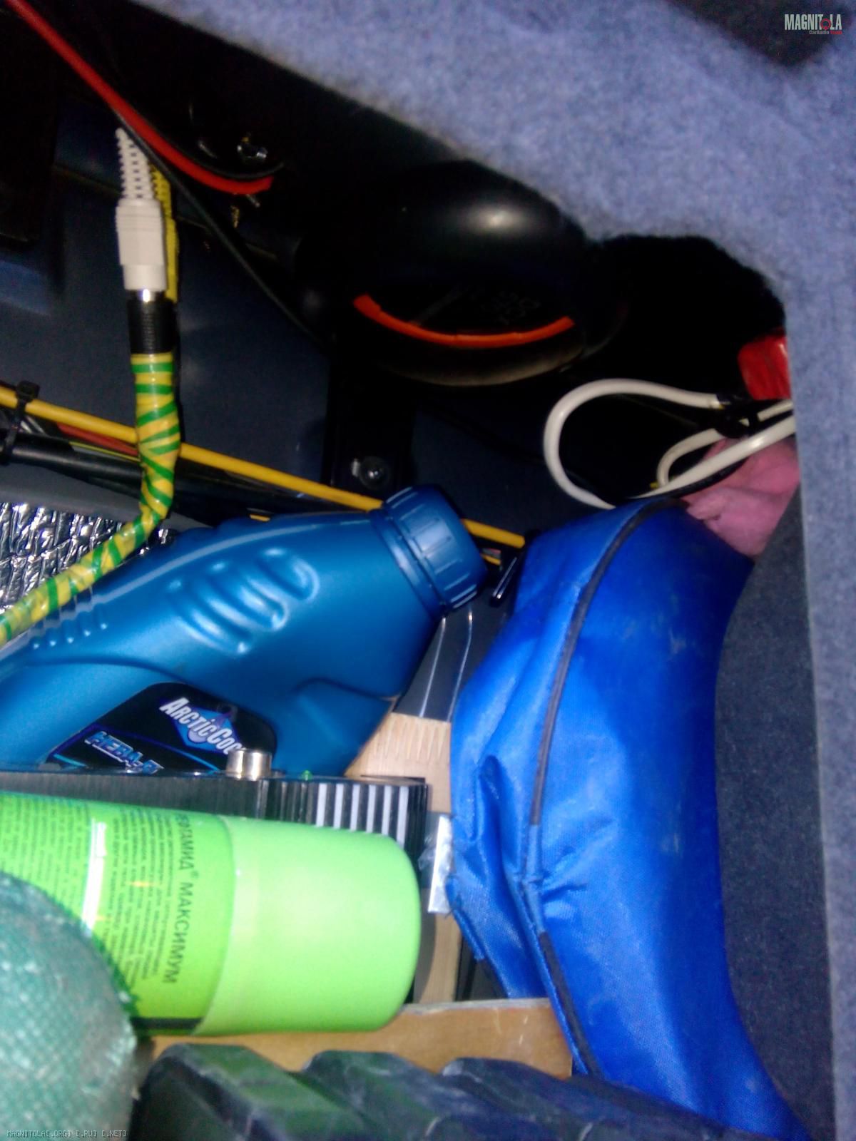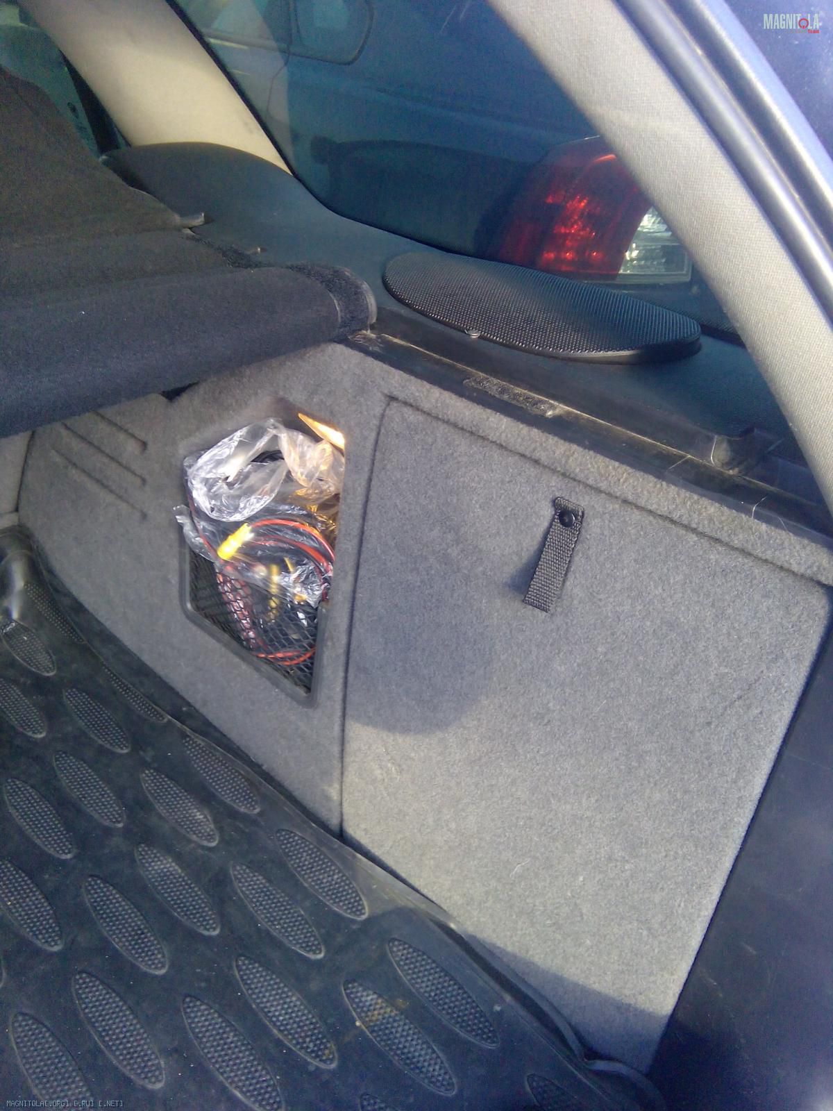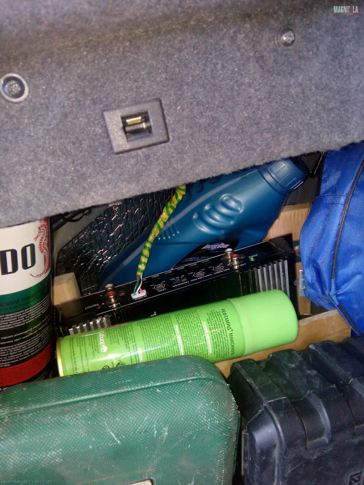 Штатная аккустика Bose 2Ом: дины в передних и задних дверях 16", сабвуфер 13см стелс в багажнике, все это через штатный усилитель Bose. так же в багажнике. Дины подключены через разъем "B" т.е. высокий выход на штатный усел и потом на дины и саб. Отдельного выхода на штатный саб с мафона я честно говоря не увидел. ШВИ дверей, багажника, подкапотки. (вибра 2,5 мм + сплен 5мм)
