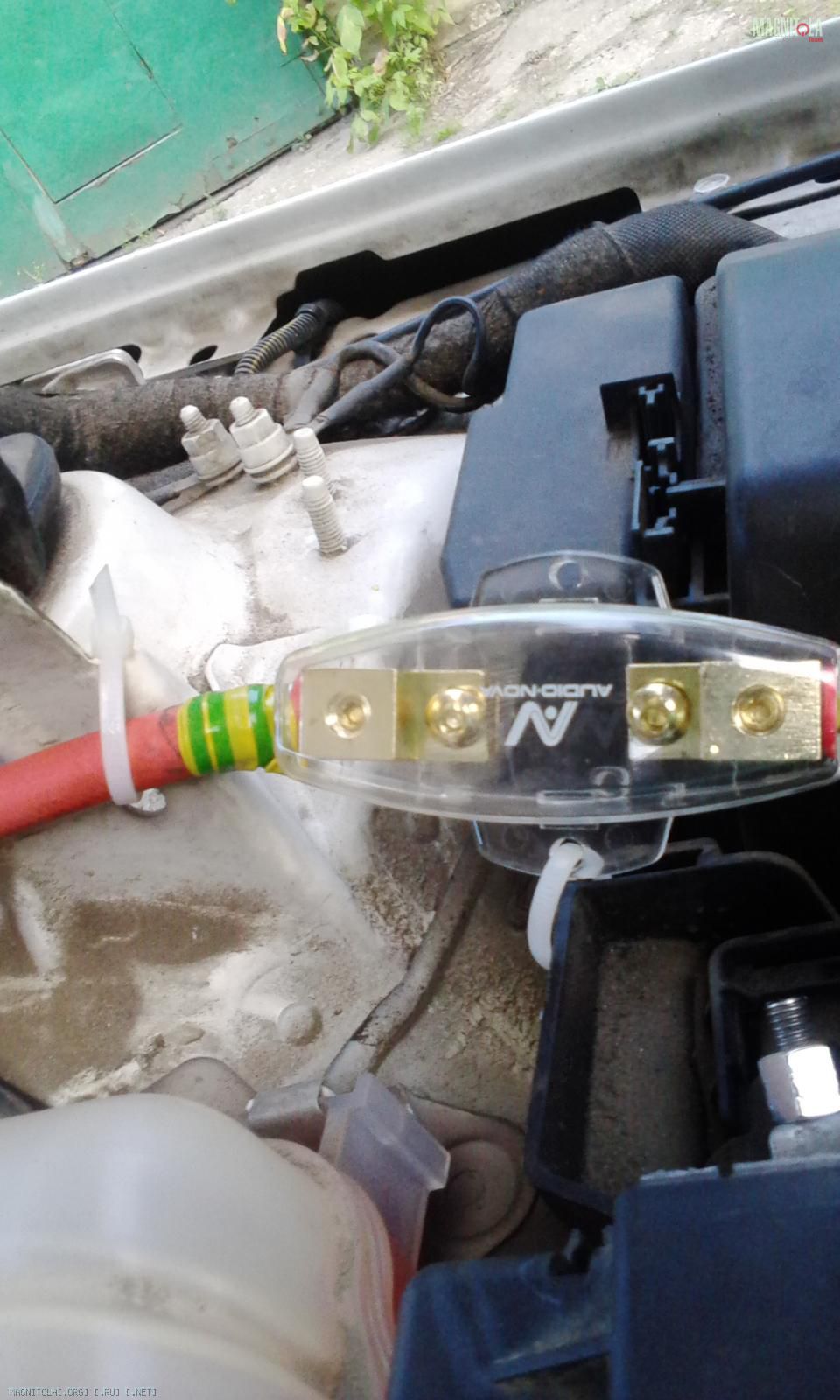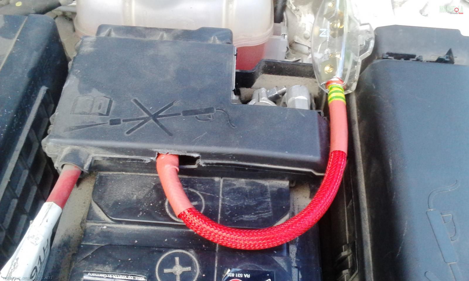 От клеммы "+" идет в блок предохранителей на АКБ, к следующей точке после клеммы я и прикрутил. Там шпилька. Надо будет фото сделать