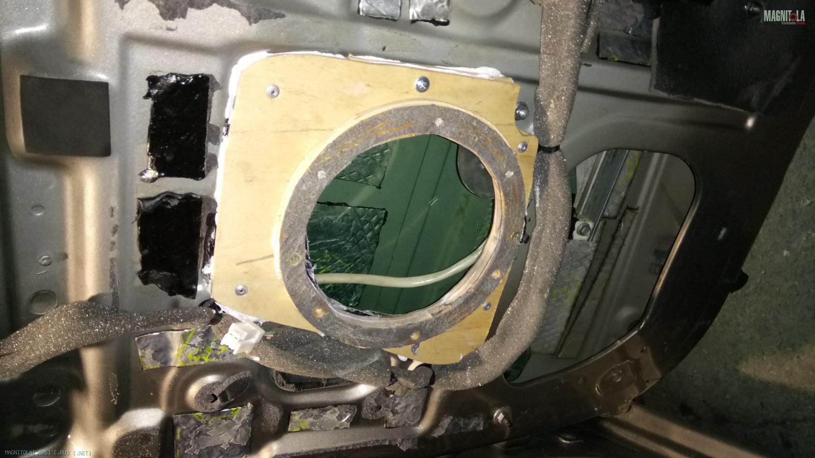 Сегодня в одной двери поставил вархед. Обшивку еще не ставил, но боюсь, что не сядет(, вырезал больше отверстие, теперь за мидом расширение. Под мидом прикрепил на 4 заклепки алюминевый профиль с внутренней стороны. Осталось доделать заглушки на тех отверстия и закатать виброй. В руке при проверке мид басил лучше, чем когда прикрутил) думаю это АЗВложение 1061708Вложение 1061710