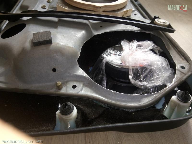 Более того, возможно чтобы уменьшить эффект "канала" динамик установлен на высоте примерно 5 см от дверной карты, а далее на него надет резиновый расширяющий конус высотой ещё 3-4 см ... тут уже эффект трубы наверно начинает играть роль...