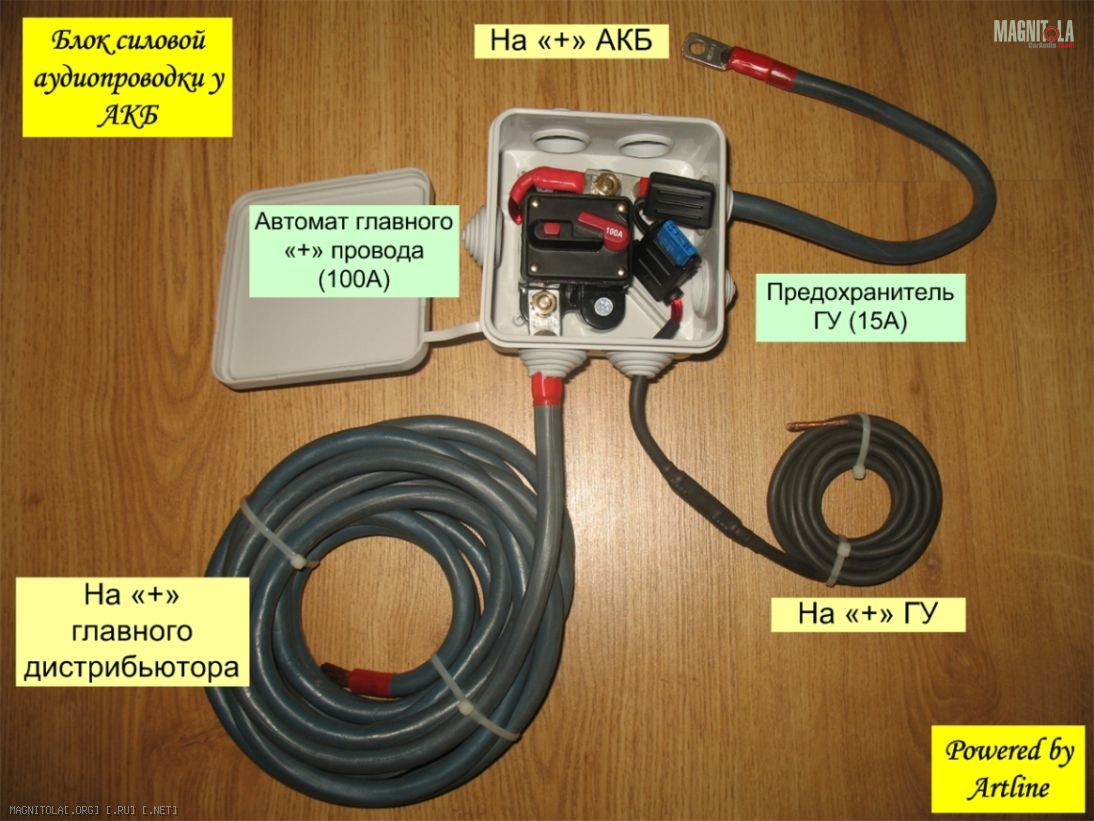 Могу от себя добавить..Лично моё мнение..Для развития системы достаточно двух кабелей 35 КГ(на сварочный ,а силовой кабель)для сварочных робот обычно другой используют (жилы потоньше и количеством их побольше).Почему их должно быть два (многим объяснять не нужно),а так на пальцах..У каждого в розетки два или три проводника(не кто не бегает не подключает к батареям проводники) а один проводник (в целях экономии не берёт с розетки).По этому кузов авто -плохой проводник ,в процессе инстала создающий проблему с наводками и с потерями напряжения.В КГ одна проблема (кроме жёсткости)-изоляция,но я считаю это одной из не малых бед..До распределителя питания его место,дальше всё зависит от длины до усилителей(чем меньше-тем лучше)на первом месте всегда безопасность..В трущихся частях кабеля обязательно дополнительная изоляция,(про крепления кабеля не забываем)чем меньше он движется -тем меньше проблем.Ещё одно зло -пересечение кабелей(силовых-акустических,силовых-межблочный)проблема многих наводок-идеальный вариант когда пересечения нет ,если нет возможности это обойти то пересечение под прямым углом.Обычно преда 60А (на входе)хватает ,но бывают исключения (для примера двойка/тройка усилителей бракс)там и 100А может быть мало..И не нужно складывать преды на усилителях,но ставить меньше чем на усилитях тоже не стоит.Проще замерить ток клещами на входе и понять сколько потребляет ваша система.
