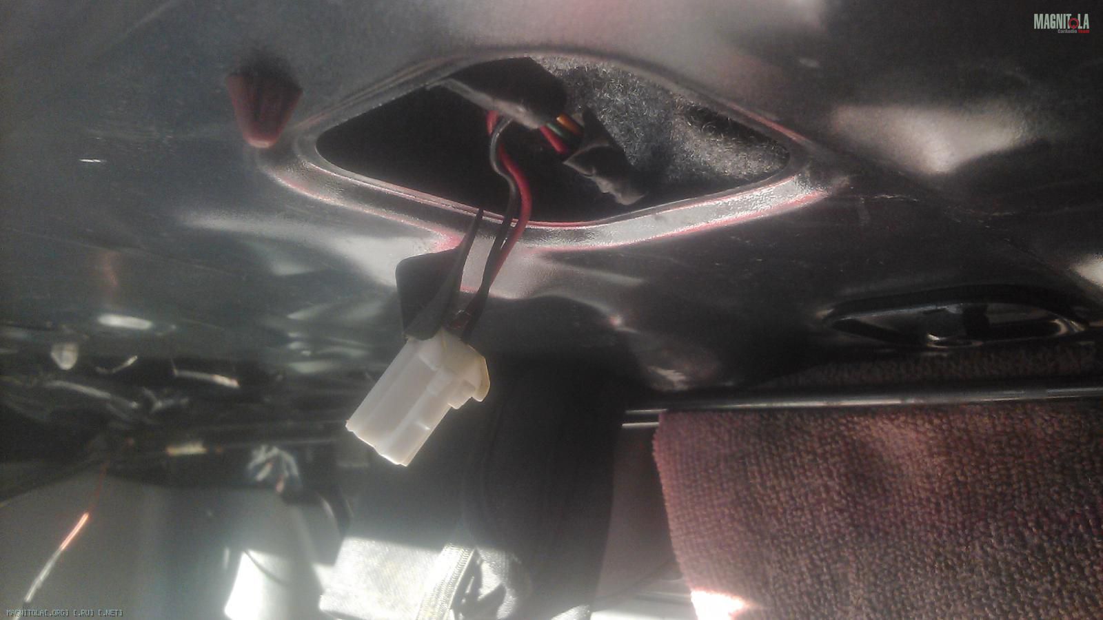 На пищалки подаём сигнал от тылового канала магнитолы через конденсатор с комплекта.