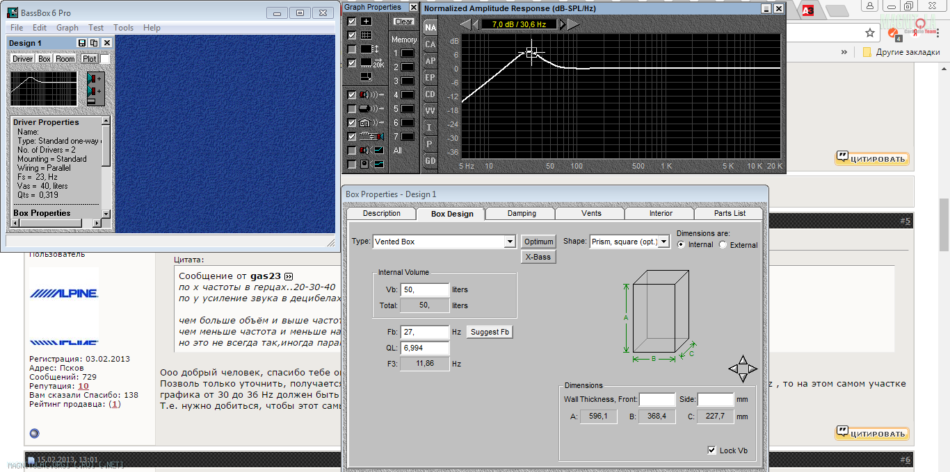 Вот на 37 гц 6 дб на 40 литров думаю остановиться на нём