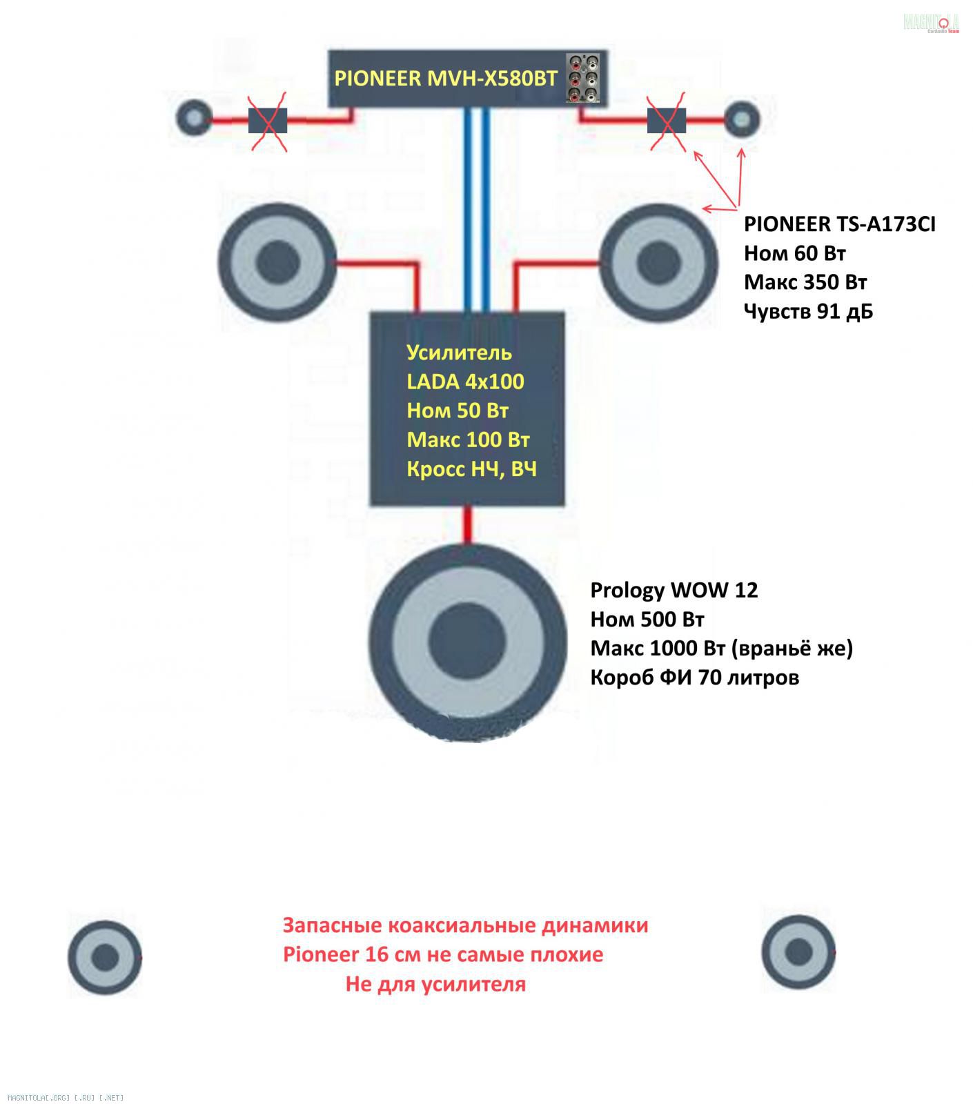 1. Пищалки нужно подключить к выходам встроенного усилителя магнитолы? Нужно ли ставить фильтры при этом? Или лучше к фронтальным динамиком, которые запитаны от усилителя LADA?