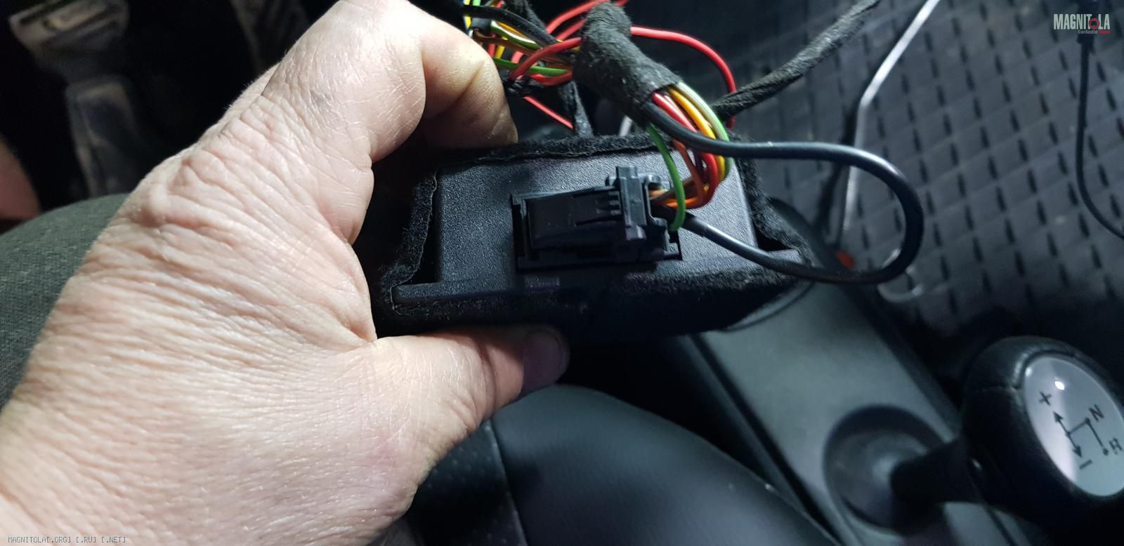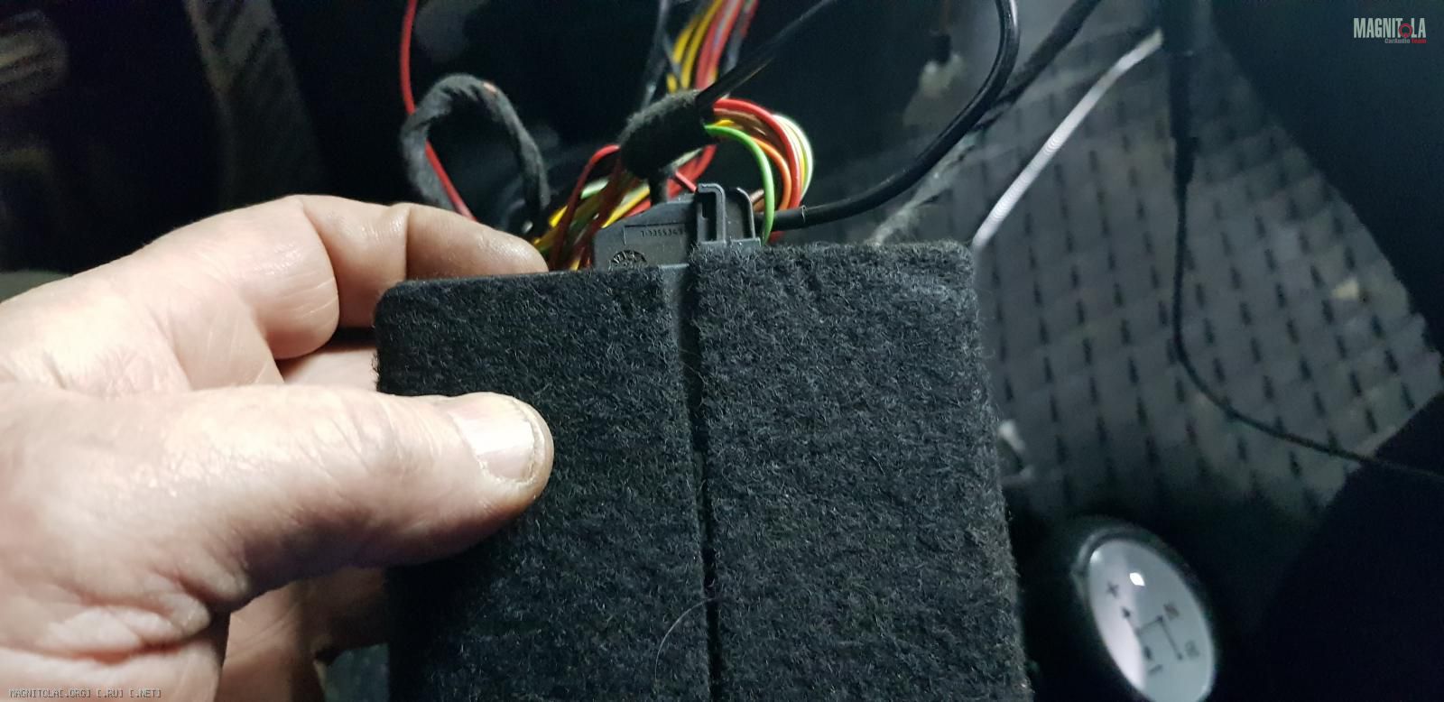 На втором фото, изогнувшись черной змейкой, проводок от джека ныряет в таинственную коробочку. Ну нет на ней никаких толковых обозначений, кроме почти ушедших надписей, говорящих о принадлежности к миру мерседес ( третье и четвертое фото). Поэтому мне и было трудно объяснить что за коробочки. А все цветные провода разъема черного ящика уходят через коричневый разъем штатной проводки в недра автомобиля.