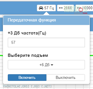 При проверке через сайт Speaker Box Lite при выставлении параметров автомобиля 57,1 Гц и +6Дб получился график: