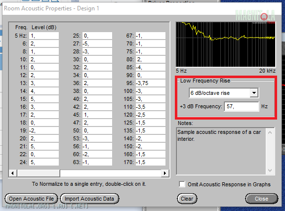 2. При проверке через программы динамика я правильно понимаю, что при вводе данных об автомобиле необходимо ввести данные передаточной функции салона и расчетное подъем, который в дальнейшем можно будет выставить на усилителе?