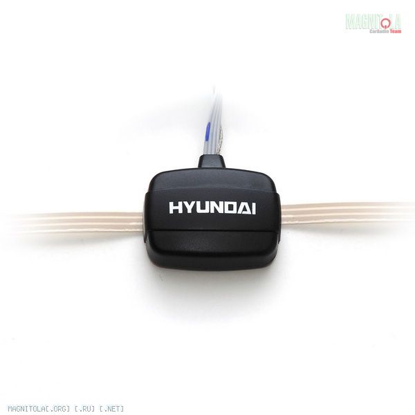После поисков в интернете выяснил, что моя "коробочка" очень похожа на антенну Hyundai H-CA3200 (см. картинку). У меня точно такой же шлейф, на картинке также виден провод на массу. У меня точно также крайний провод в шлейфен помечен синим (видимо, это питание).