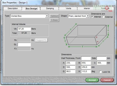 вот параметры ящика...То что расчет странный это уже к установщикам,поэтому я и обратился за помощью к вам.Ну хоть убей не нравится мне как он играет.Из за этого и инсталл застопорился.