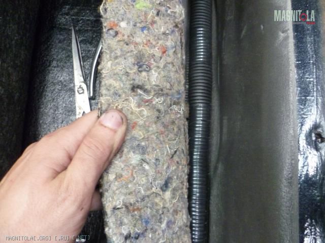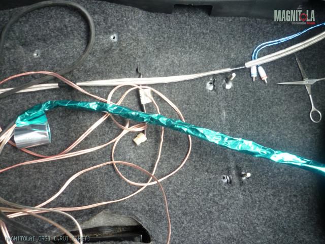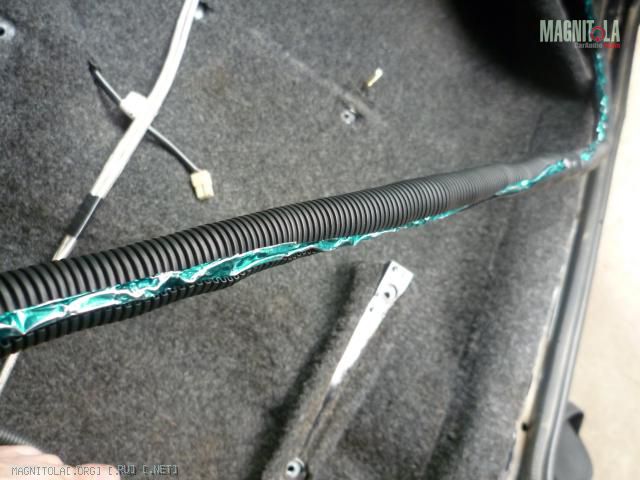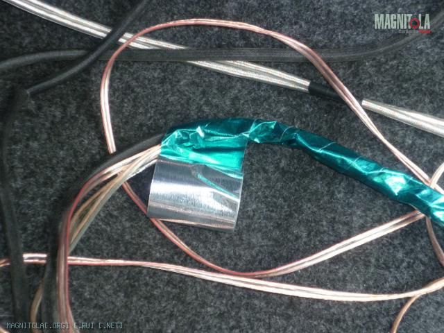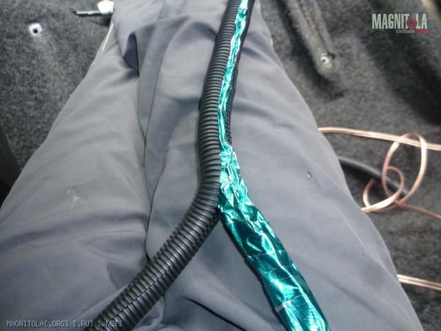 Заворачивае акустические провода в фольгу и одеваем на них гофру Вложение 80430Вложение 80429Вложение 80428Вложение 80427из за толщены пучка гофра сомкнулась не полностью, я еще обернул изолентой чтобы фольга не касалась нигде металаВложение 80434Вложение 80433Вложение 80432Вложение 80431И прокладываем по салону