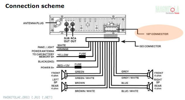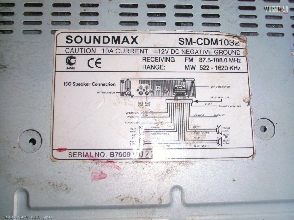 Потерял кабель SoundMAX SM-CDM 1032 16pin-ISO. Распиновку сам найти не смог: на сайте информация только по цветам проводов и их назначении, причем на схеме подключения в руководстве и на наклейке на самой магнитоле порядок проводов указан разный (хотя информация про цвет-назначение провода совпадает). Просьба тем, у кого есть сабж, сфотографировать широкую колодку спереди и сзади. Ну или ткните носом в ссылку 8-).