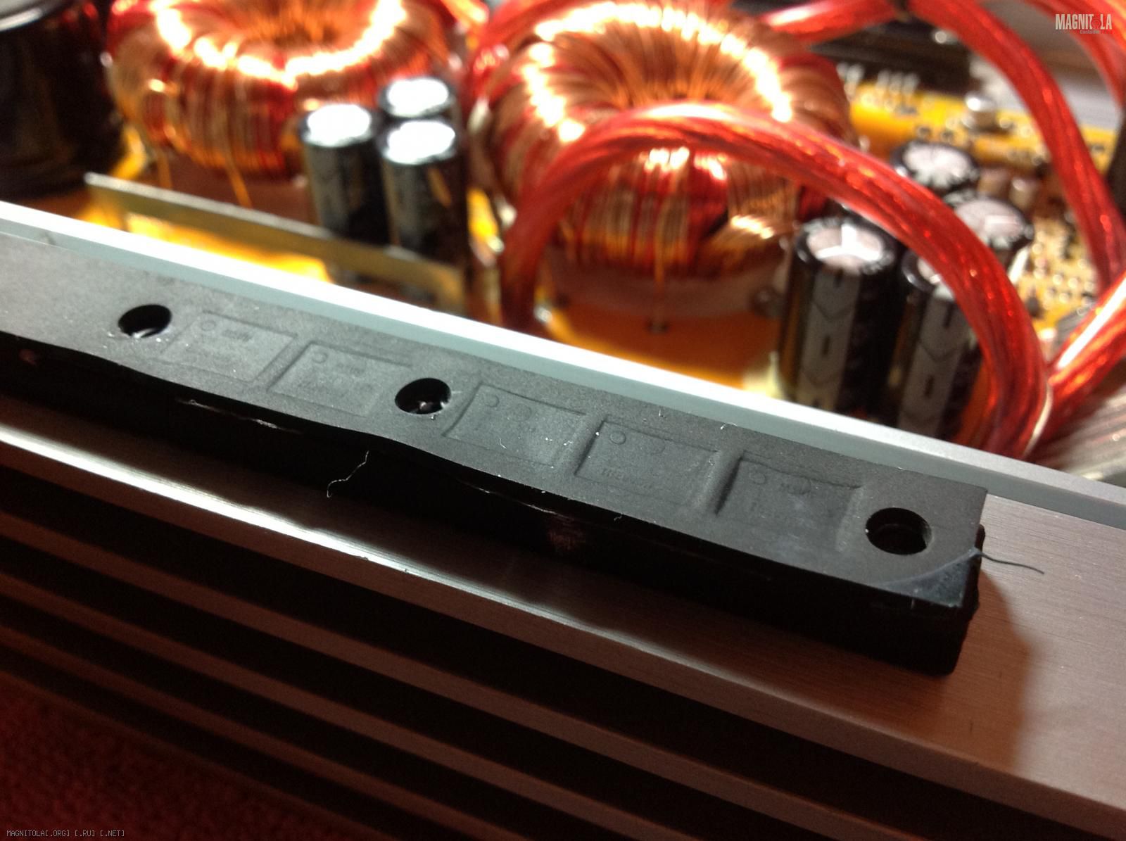 Причина теплового пробоя еще более банальна: качество резинки,которая приклеена к прижимной планке транзисторов и создана для того,чтобы сгладить неровности планки.На деле эта самая резинка не имеет достаточной жесткости.Со временем она становится мягче и просто неспособна прижимать транзисторы,этим самым обеспечивая им плохой тепловой контакт(что и произошло в моем случае). Далее будет фото с пояснениями...
