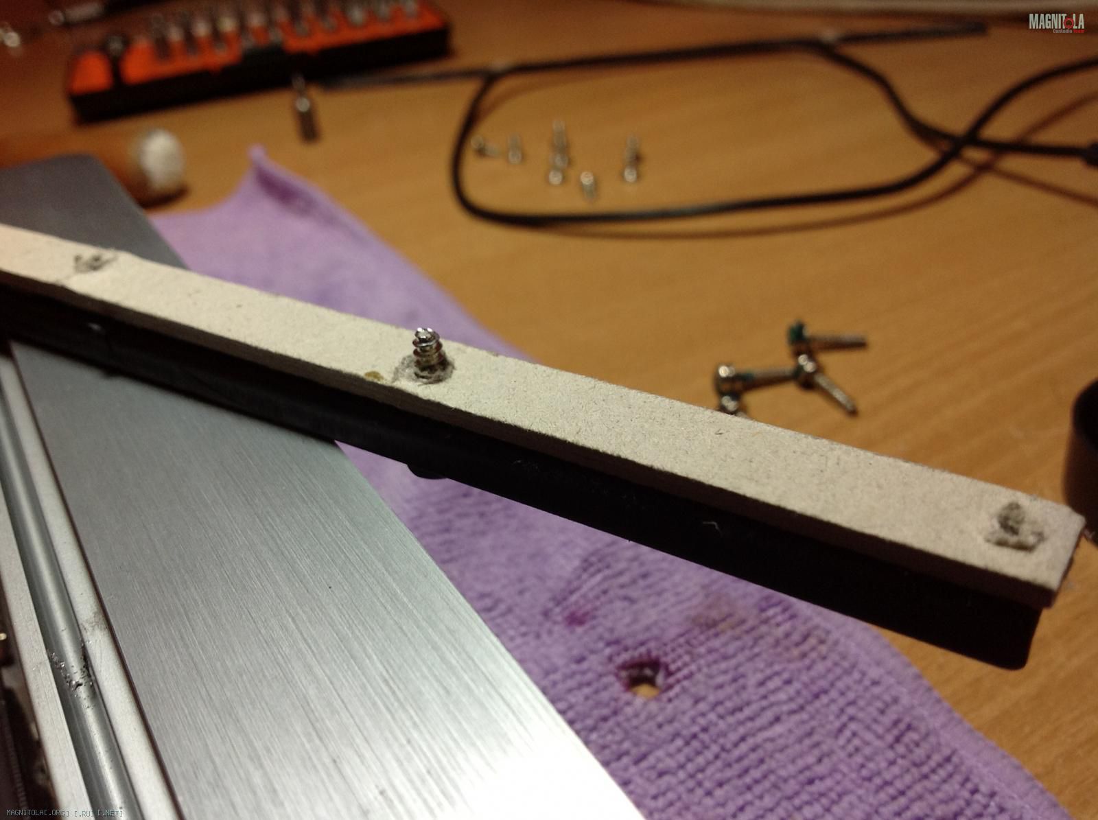 Далее ставим на место резинки наш картон,прислоняем к нему прижимную планку и АККУРАТНО начинаем ее закручивать.Дело в том,что болты очень хлипие и если сильно стараться,то можно умудриться отломать шляпку.Собственно у меня так и случилось с одним.Будьте аккуратны и не спешите.Как вариант,можно эти болтики заменить на другие,лучшего качества,но у меня под рукой оных не оказалось. И собственно результат