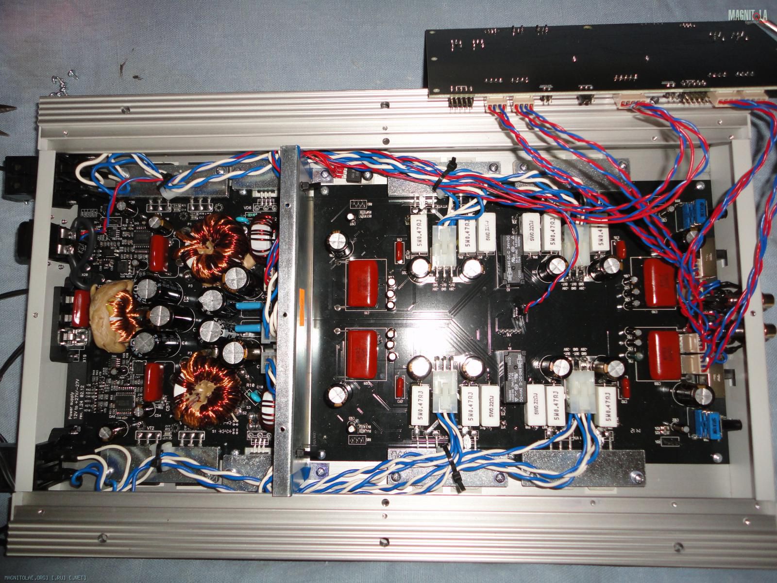 Вскрываем: (это абсолютно санкционированное производителем действие, ибо для глубокой настройки усилителя требуется открутить 11 саморезов, сорвать днищще и совокупить Hi-End изделие через дополнительно приобретаемый адаптер с компом. Впрочем об этом позже)