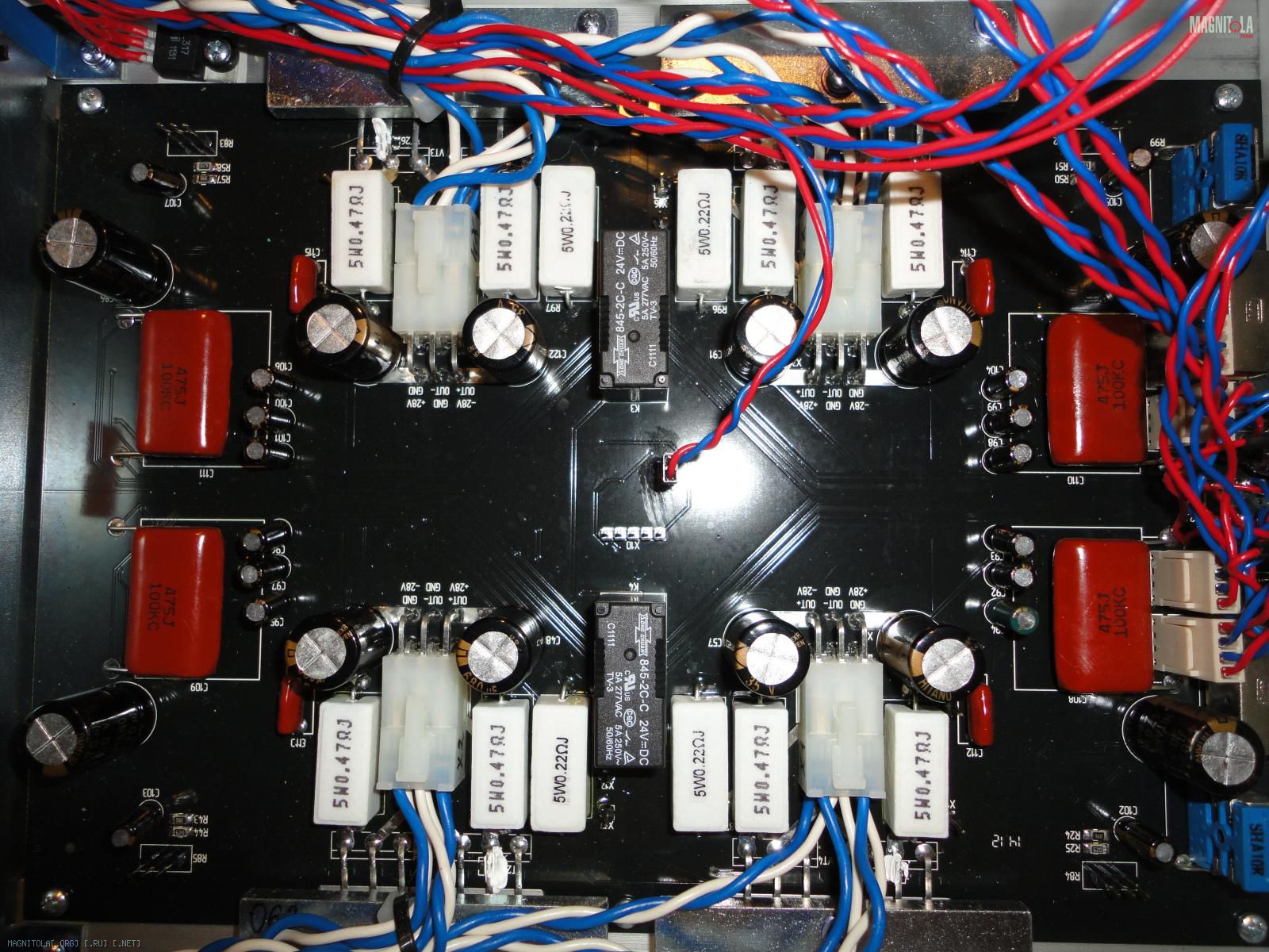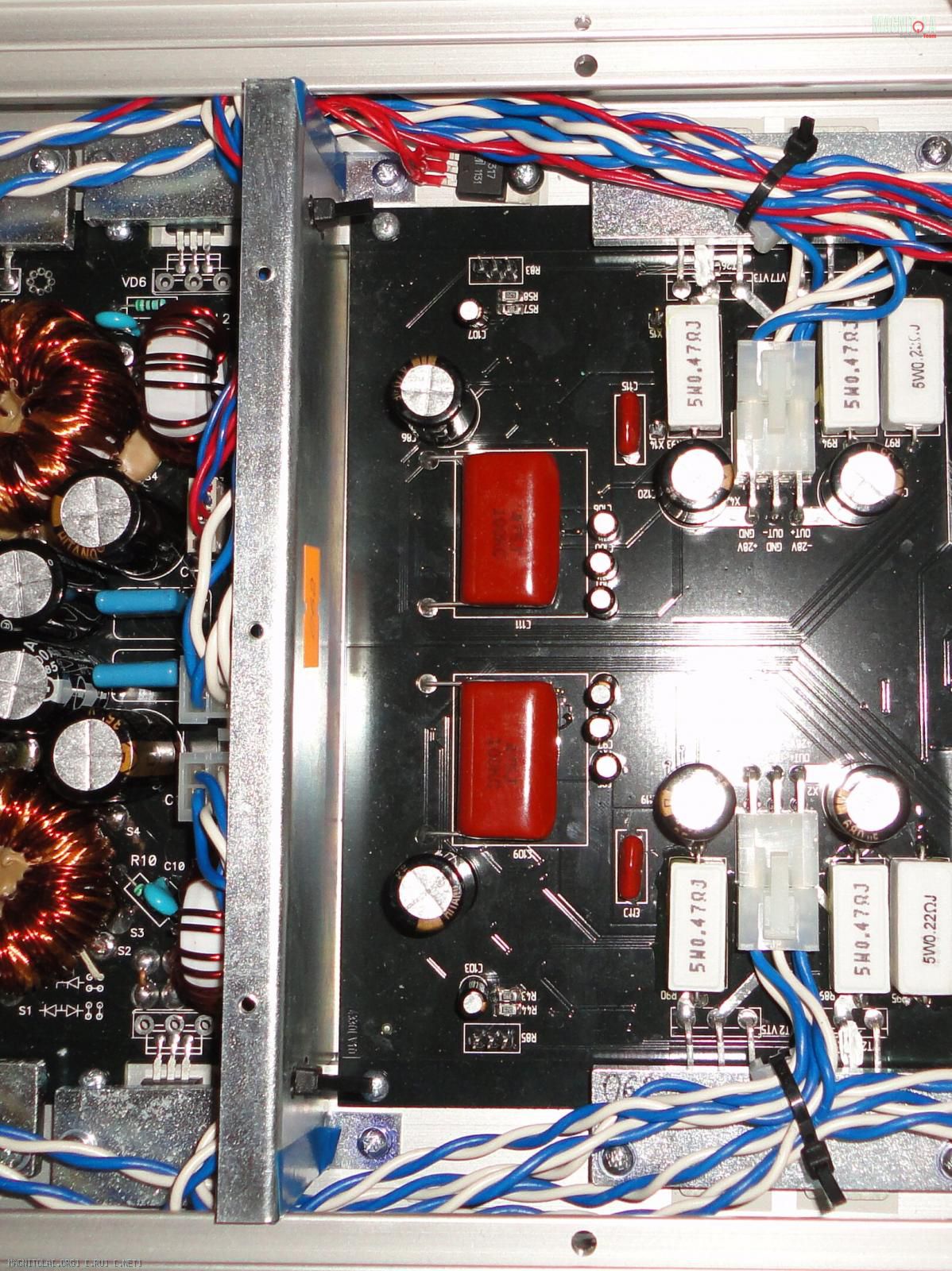 двусторонние печатные платы с экранирующим подслоем и переборка между источником питания и усилителем, обеспечивают минимальный уровень помех от автомобильных подсистем, сотовых телефонов и встроенного импульсного блока питания;