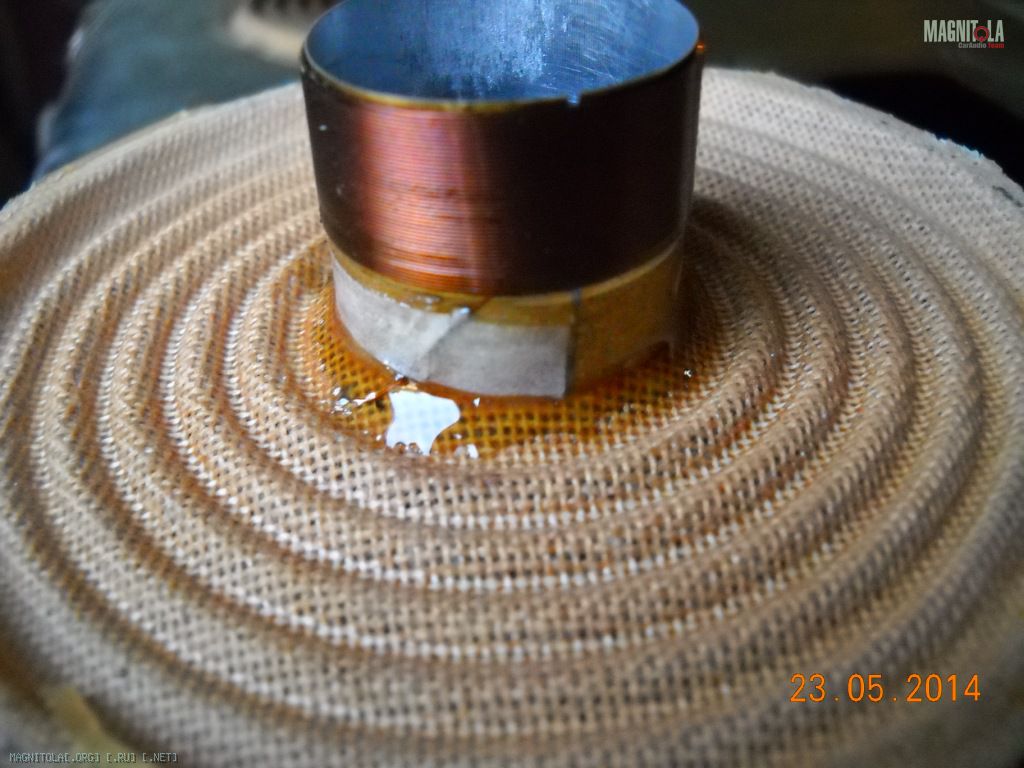 Всем привет! На выходных я занимался распитием "прохлаждающих" напитков в своем боксе,в окружении веселой компании,и тут приезжет один знакомый,проливает крокодильи слёзы и жалуется на омертвевшие "лопухи". Я вспоминаю,что лично их ставил месяца три назад,и тут вдруг оклякли...))) Совершенно случайно на верстаке завалялся фотик,товарищ ныл под ухом-мол девкам не пляшется на капоте-громкости мало млин,и уболтал их реанимировать. Итак...-пациент "morel maximo"...Вложение 583182,дагностика показала что у них оторвались катушки от диффузора,с чего бы???!!! Ладно двадцатилетней давности дин,склееный нитроклеем!..подвес легко отрывается с помощью тупой отвертки,так как в отличии от 6гдш,приклеен на сопли дядюшки Ляо))Вложение 583184,тоже самое с центрирующей шайбой!Вложение 583186,отпаял подводящие,выдрал диф,ага...-юбка на диффузоре (при таком калибре 3мм минимум нужно)-вообще не видна,и сверху клею налили столько,как будто он по цене красной ртути!..Вложение 583190.Впридачу азиатские друзья забыли кусок центрирующей пленки!!!! Видно на фото что задиры на одном динамике только с внутренней стороны катушки-а это ерунда,на другом -с еще и с наружней(это хуже,но если нет повреждения боков провода обмоточного-то хрен бы с ним! промывается спиртом от мусора))) Обломились провода в результате отрыва каркаса... Перематывать катушку в таких случаях смысла нет-сматываешь по витку с каждой стороны,было 65,стало 63-на звук не повлияет...тем более "блина"!В штатном варианте провод идет между катущкой и дифом,потому и обламывается,я его пропускаю с помощью шила через центрирующую шайбу и диф...Вложение 583188 Что бы они не рогатились и не цепляли за фланец МС,можно прихватить их скочем бумажным...Сверху все это дело замазывается эпоксидкой ЭДП-2,тонким слоем,чтобы не утяжелять подвижку,и что-бы катушка не цепляла зазор.В сети можно прочесть массу ахинеи-кто,чем,зачем )))-клеит катушку во время намотки,просто при ремонте-кто чем,но ТОЛЬКО НЕ СУПЕР МОМЕНТОМ,НИТРОКЛЕЕМ,ПРОСТО "МОМЕНТОМ",БФ-6 -ЭТО ЕРУНДА! Мотать катуху нужно со всей дури,держа усилие на грани обрыва(измеряется безменом!),и естественно улучшается плотность обмотки.Катушка может оставить след на внутренней стороне каркаса-значит "всё гут!" И это гарантия что она не слетит в первые часы эксплуатации,что часто происходит у горе намотчиков...Когда сматываете ,а не перематываете катушку-примените оправку с большим прослаблением(я применил тубу от канц клея,с доводкой диаметра скотчем-Вложение 583194,затем катушка выставляется строго перпендикулярно диффу(видно по следам обрыва,и с помощью угольника),промазывается клеем с внутренней...Вложение 583196,и наружней стороны,после припайки выводов к лепесткам с подводящими проводами...Вложение 583198 Всё это добро оставляется сушится на сутки(в этом и достоинство простой эпоксидки,в отличии от всяких полиэфирок,холодных сварок с предускорителями)-возможность убрать "косяки" в течении часа,пока не "захрясло". На следующий день проверяем что получилось,выгребаем грязь из магнитного зазора фольговым скотчем,смазываем шайбу и корзину клеем "момент",центрируем катушку полосками картона(так быстрей и легче при больших зазорах)Вложение 583202 и вклееваем диф.Через полчаса,вынув полоски и подпаяв подводящие к клемнику-подаем сигнал с генератора(5-10 гц,или вручную двигаем дифф) и смотрим не цепляет ли