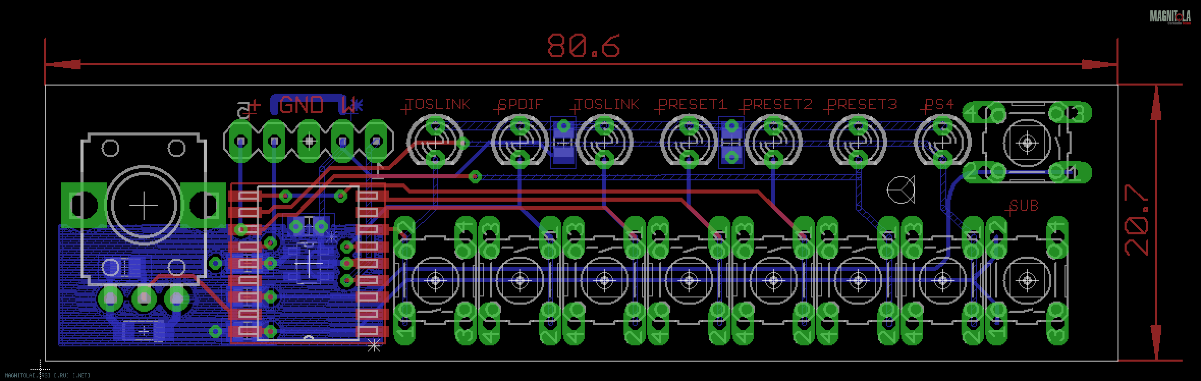 Уровень громкости есть положение движка резистора (для спортсменов этого достаточно), входы, пресеты - светодиод, а уровень саба все равно все на слух крутят. А для большинства наших пользователей громкость вообще не актуальна - от триомы запитываются девайсы. Им даже входы не нужны. Возможно сделаю миниРУКС: пресеты + саб.