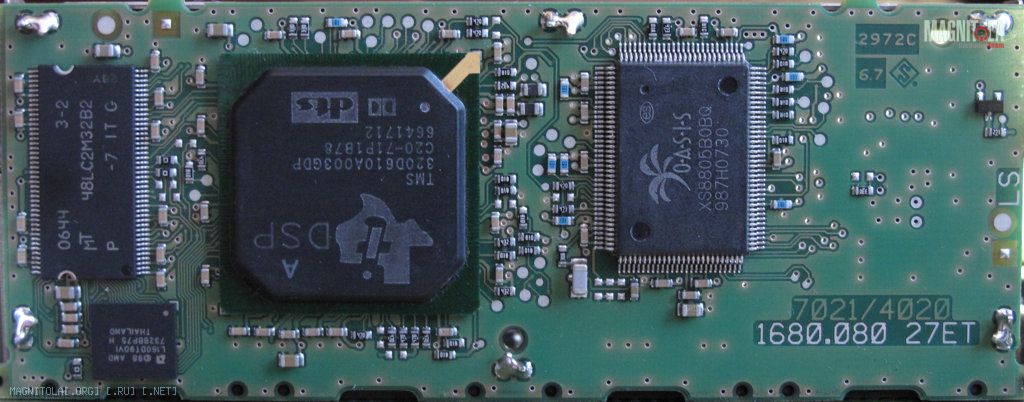 Взгляните еще раз на фото. Ничего странного в глаза не бросилось ? Что например на выходе из команда стоит 44 пиновый трансивер OS8104, а на входе в лоджике 128 пиновая система на кристалле. А теперь сами себе задайте вопрос, а нахрена инженерам из Harman Becker понадобилось использовать систему на кристалле с двумя (!) встроенными DSP, интегрированным PLL, 4 канальным аудио ЦАП-ом, ШИМ ЦАП-ом, двухканальным аудио АЦП, а также встроенным АЦП контроллера питания ? Для того чтобы вытащить пакеты I2S из шины MOST ? Вы сами то в это верите ? :)
